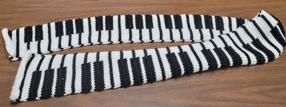 CARRIE’S SCARF THAT LOOKS LIKE PIANO KEYS