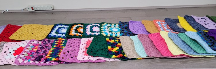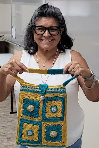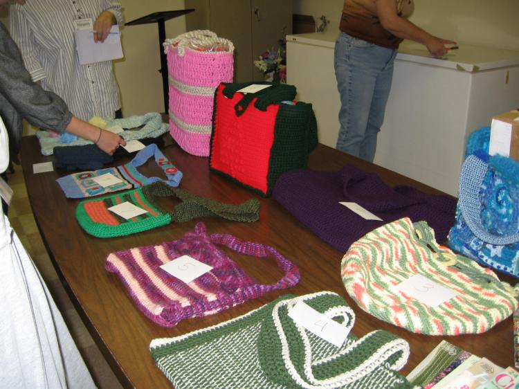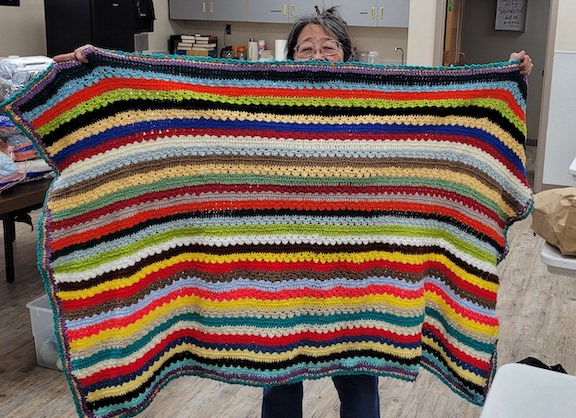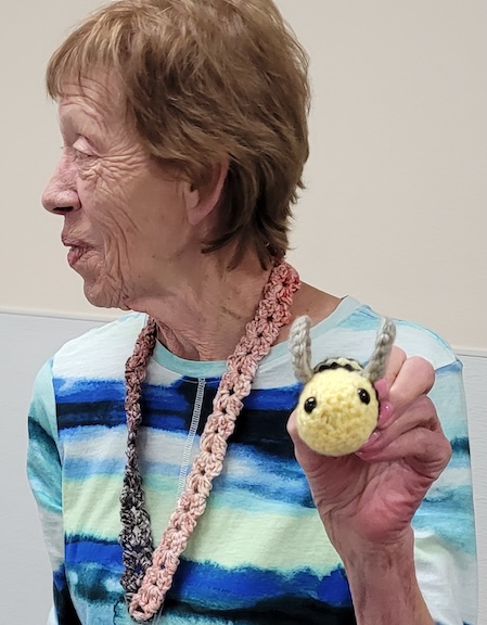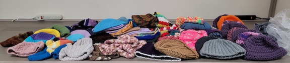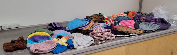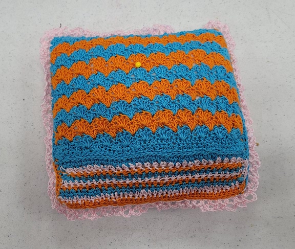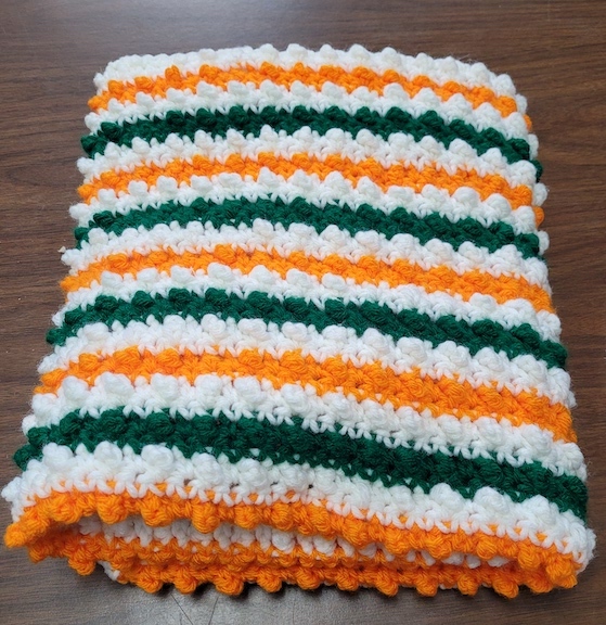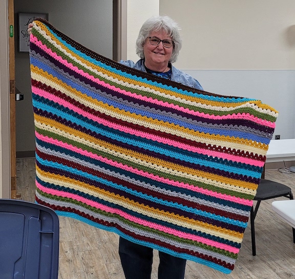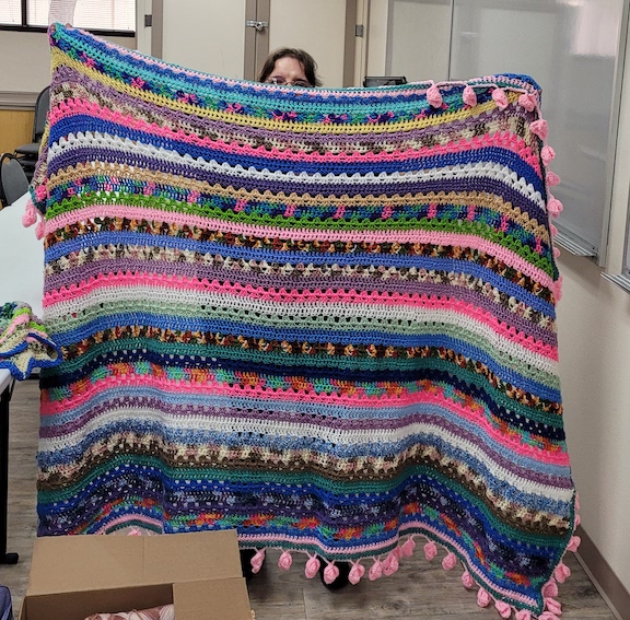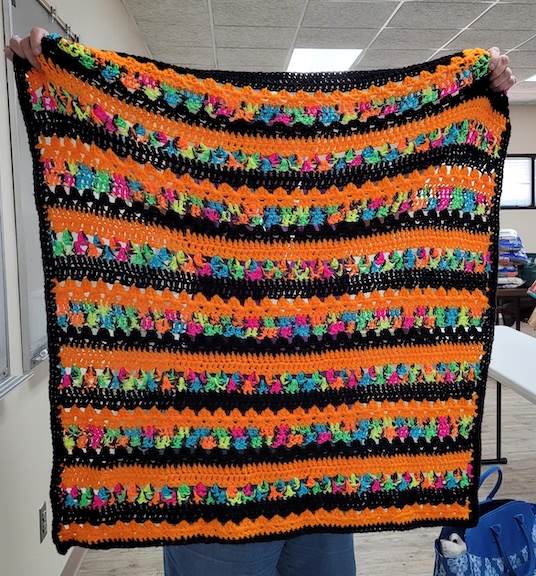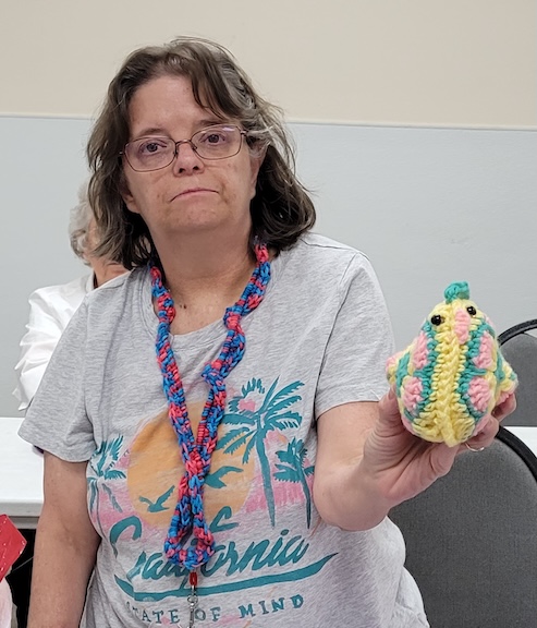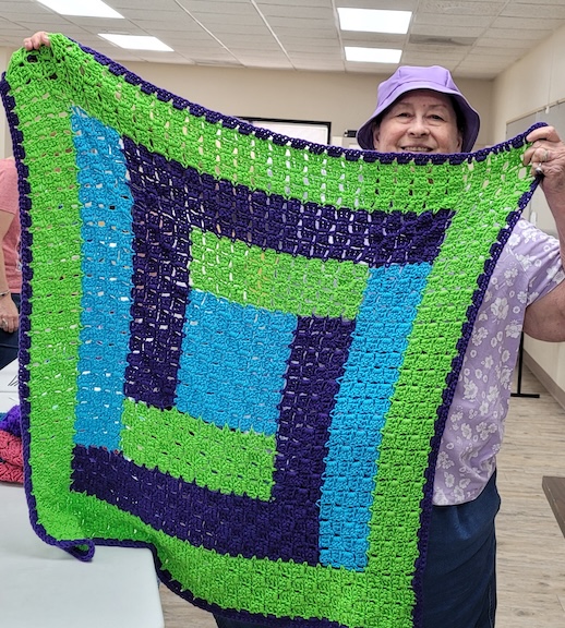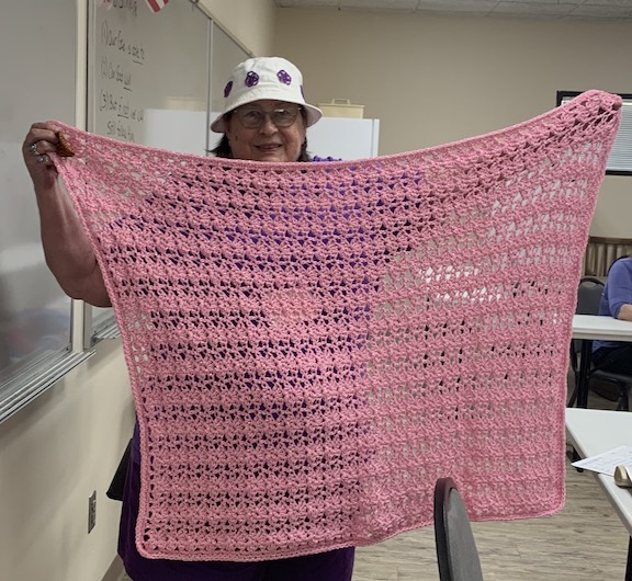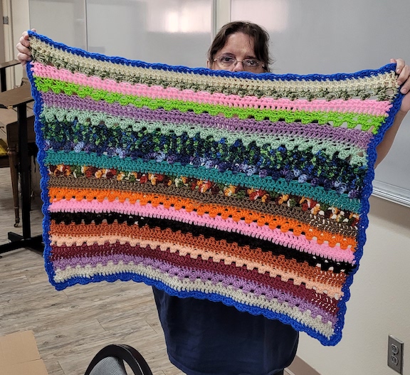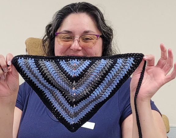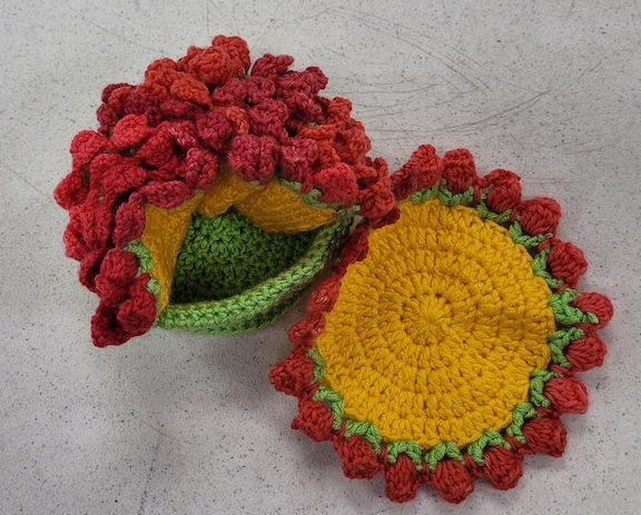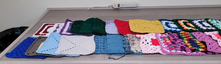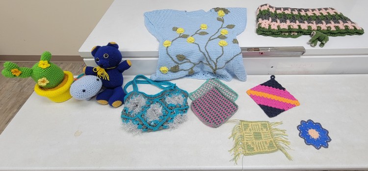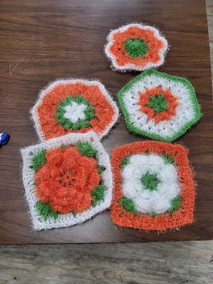 2023 Challenge – To crochet something using only 3 colors, We blind picked 3 colors and chose our own project. Here are some of the items made!!!