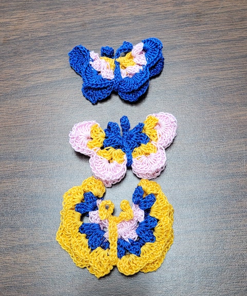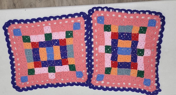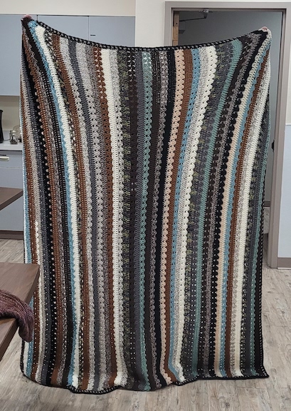 2025 Challenge – To crochet something using only 3 colors. We liked the 2023 challenge so we did it again so we blind picked 3 colors and chose our own project. Here are some of the items made!!!